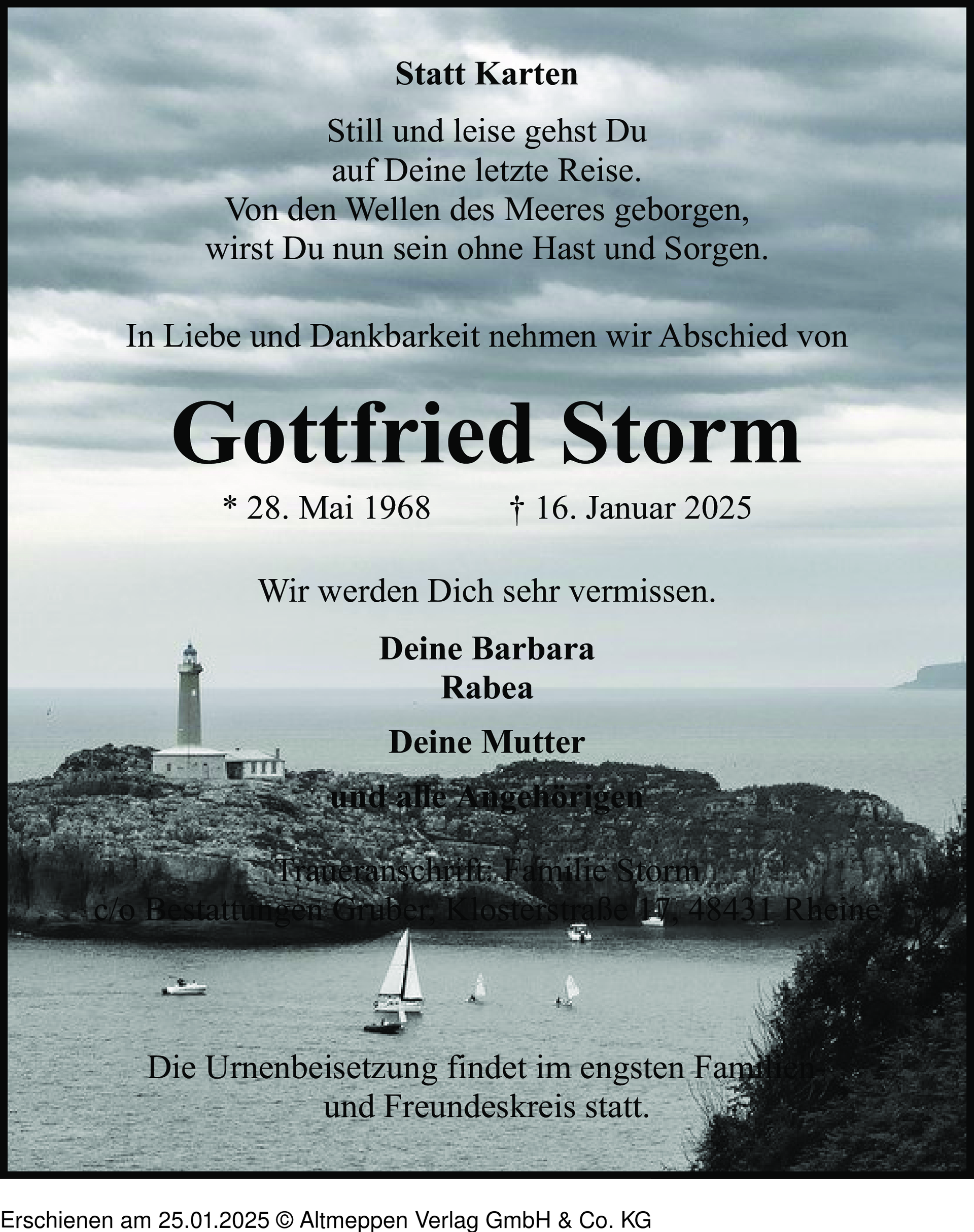 Mit großer Betroffenheit nehmen wir Abschied von unserem Sangesbruder Gottfried Storm.