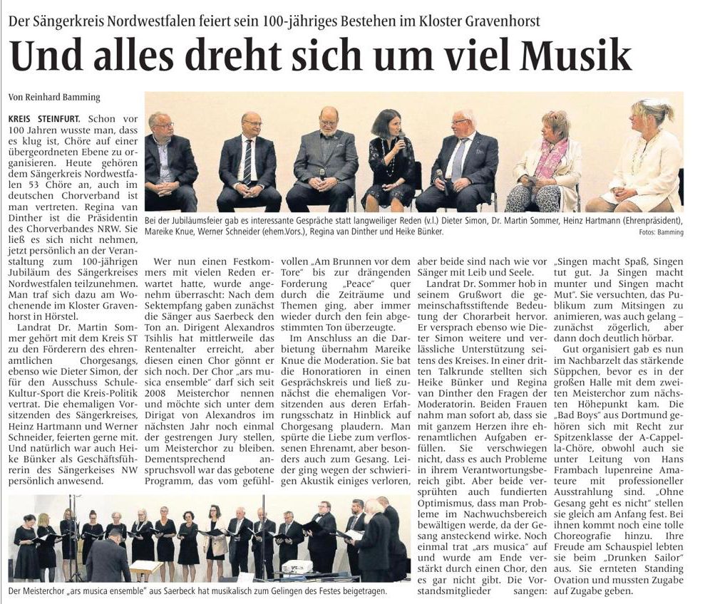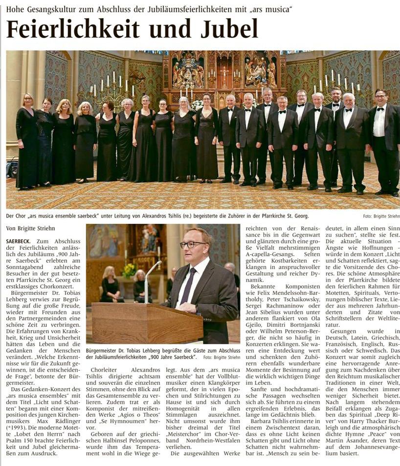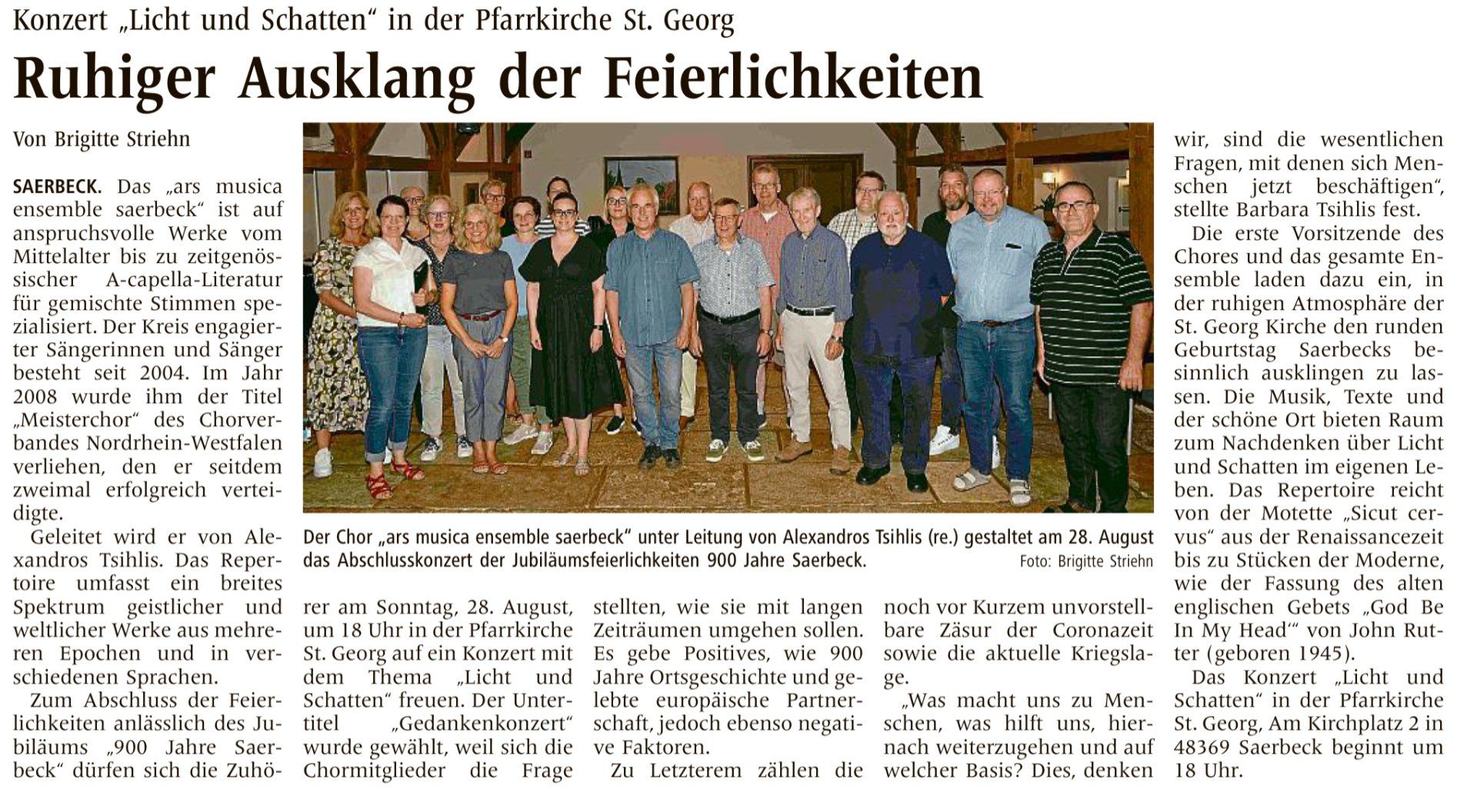 Wir danken dir dafür , dass du uns hier unseren Platz für unsere musikalische Arbeit gegeben hast und tragen gerne „Saerbeck“ in unserem Ensemblenamen.